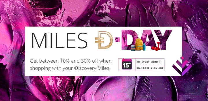 Hit refresh on your daily routine with your double Điscovery Miles discount! Shop on Miles Đ-Day on Thursday, 15 January 2026, and get up to 30% off all your back-to-school, -work and -gym essentials at over 45 Điscovery Miles partners.