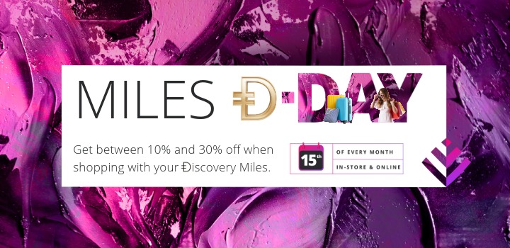 Boost your Black Friday and Miles Đ-Day deals with your Ðiscovery Miles. This month, you get an extra day of double discounts when you shop with your Điscovery Miles at over 45 retail partners.